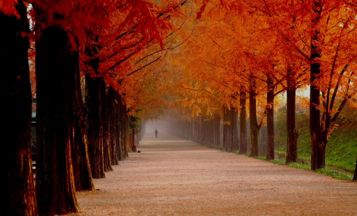 춘천 남이섬은 가을이면 메타세쿼이아 길과 은행나무 길이 황금빛으로 물들어 연인과 가족 여행객에게 인기입니다.